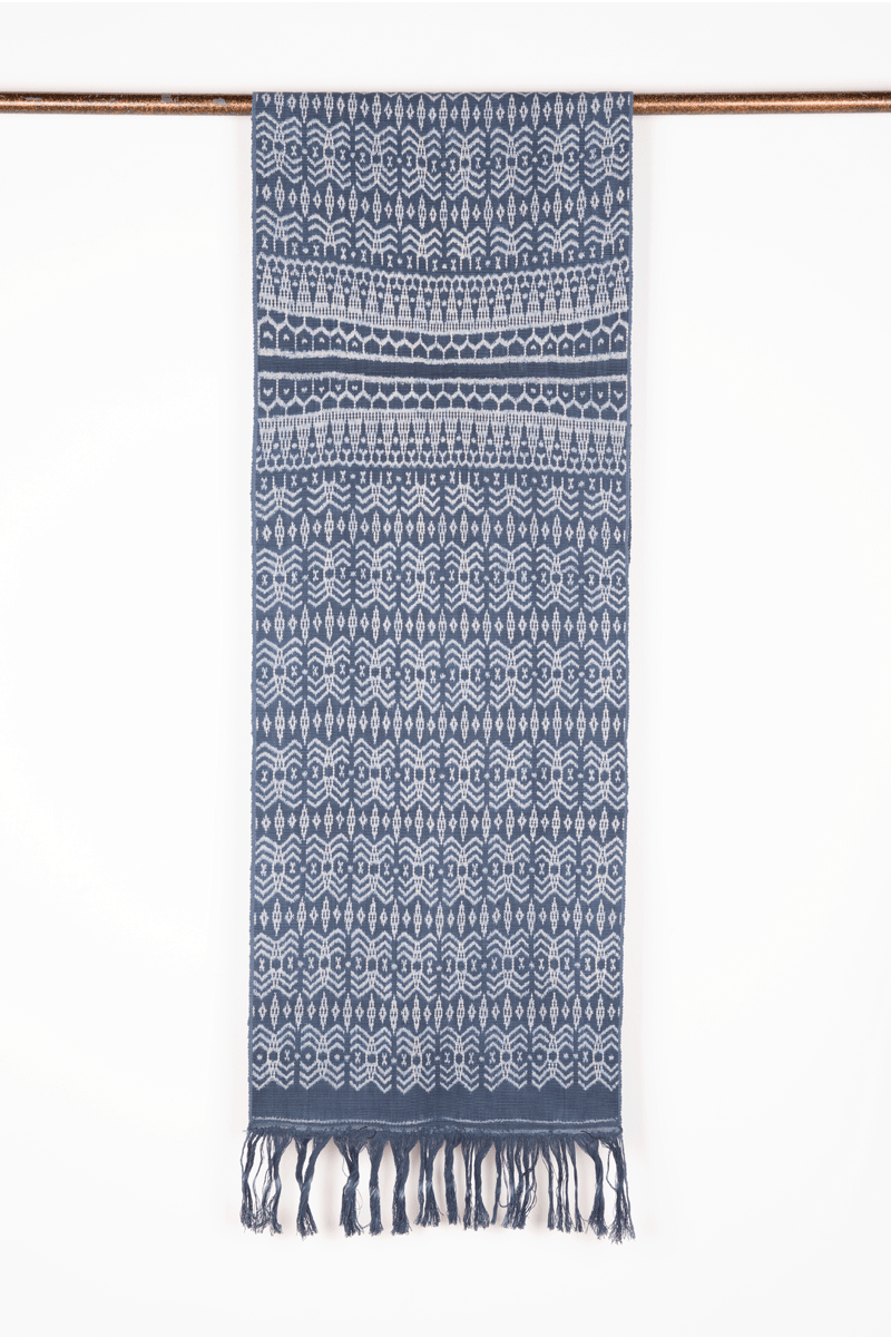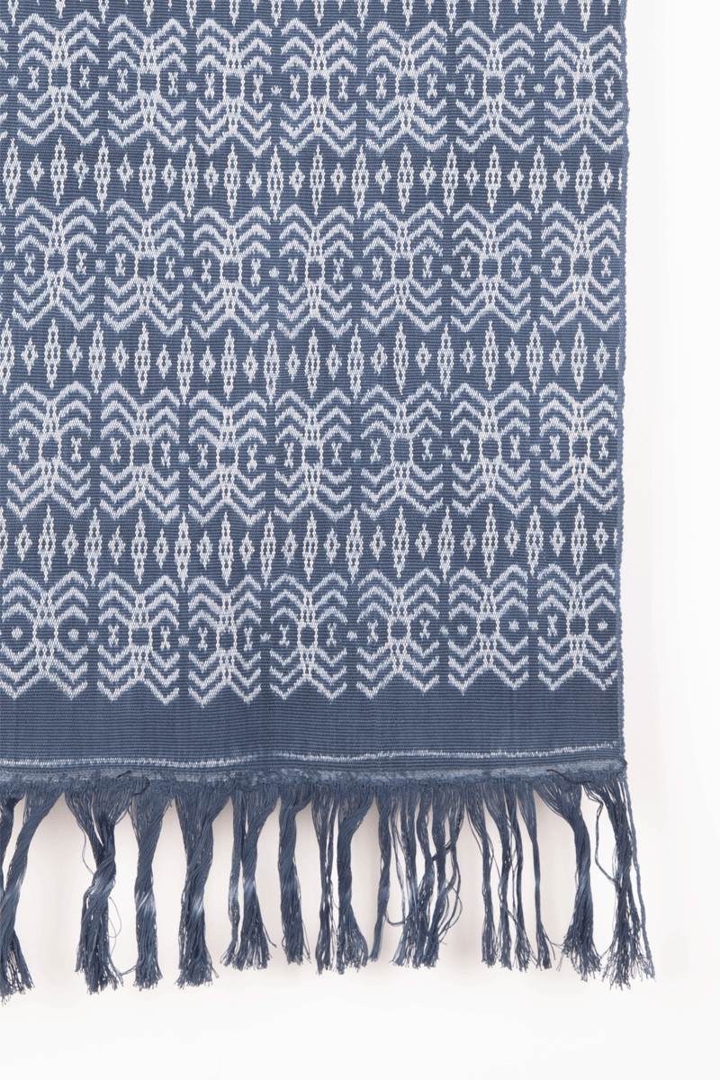 Warp ikat, single panels , twisted fringe, commercial cotton, natural dyes. Ikat tied, dyed, and woven in, Timor, 2025. Size 196 x 43 cm / 77 x 17 in