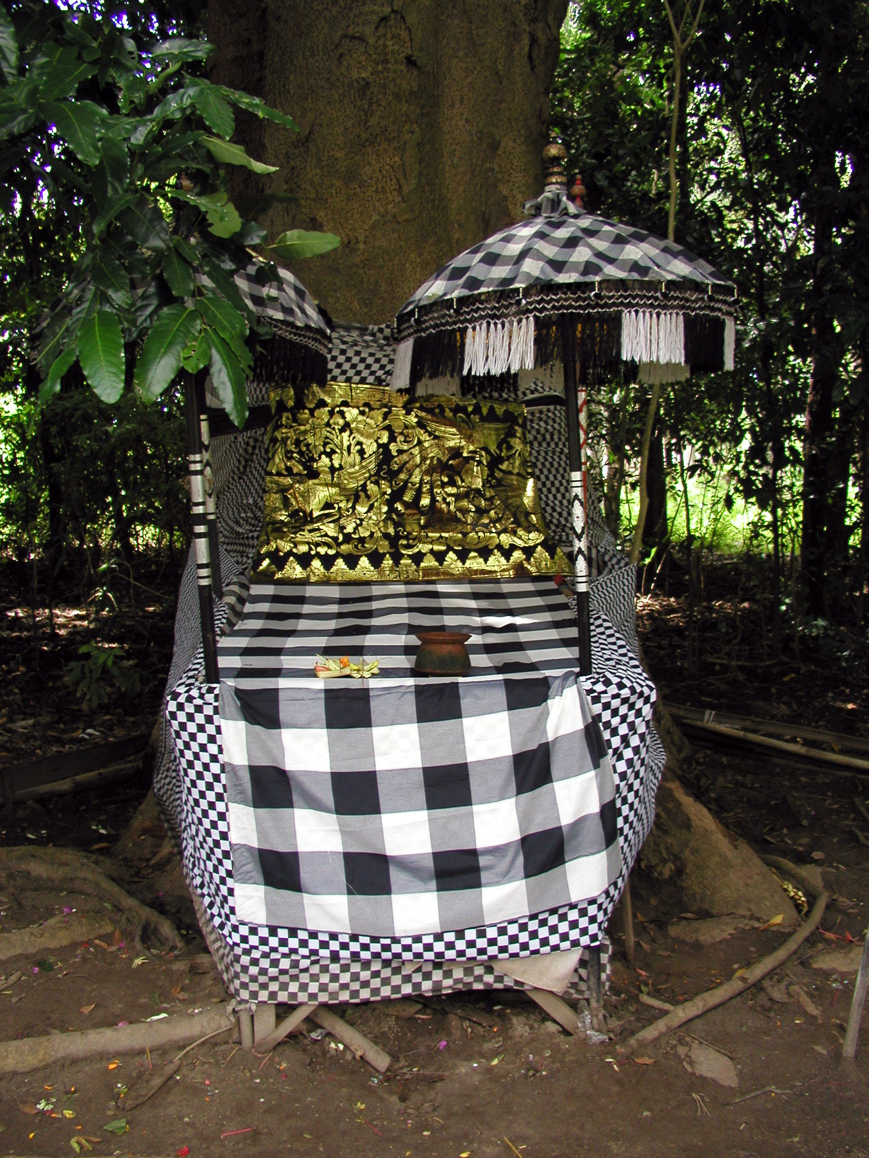 Poleng wrapped around a shrine.