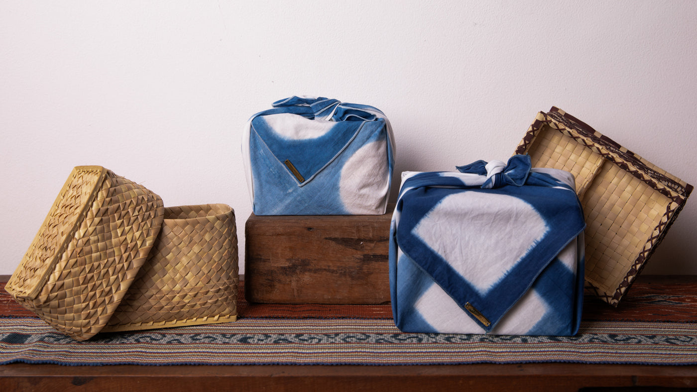 Across Timor’s dry, sunlit landscapes, indigo traditions continue to flourish. Weaving here is a tradition that has travelled through centuries, brought by early traders and sustained by generations of women. The beit ana textile and koro mama basket are made by hands, dyed using natural dyes drawn from the island’s soil and plants. This gift set carries the beauty of Timor’s landscapes and the depth of its indigo heritage.